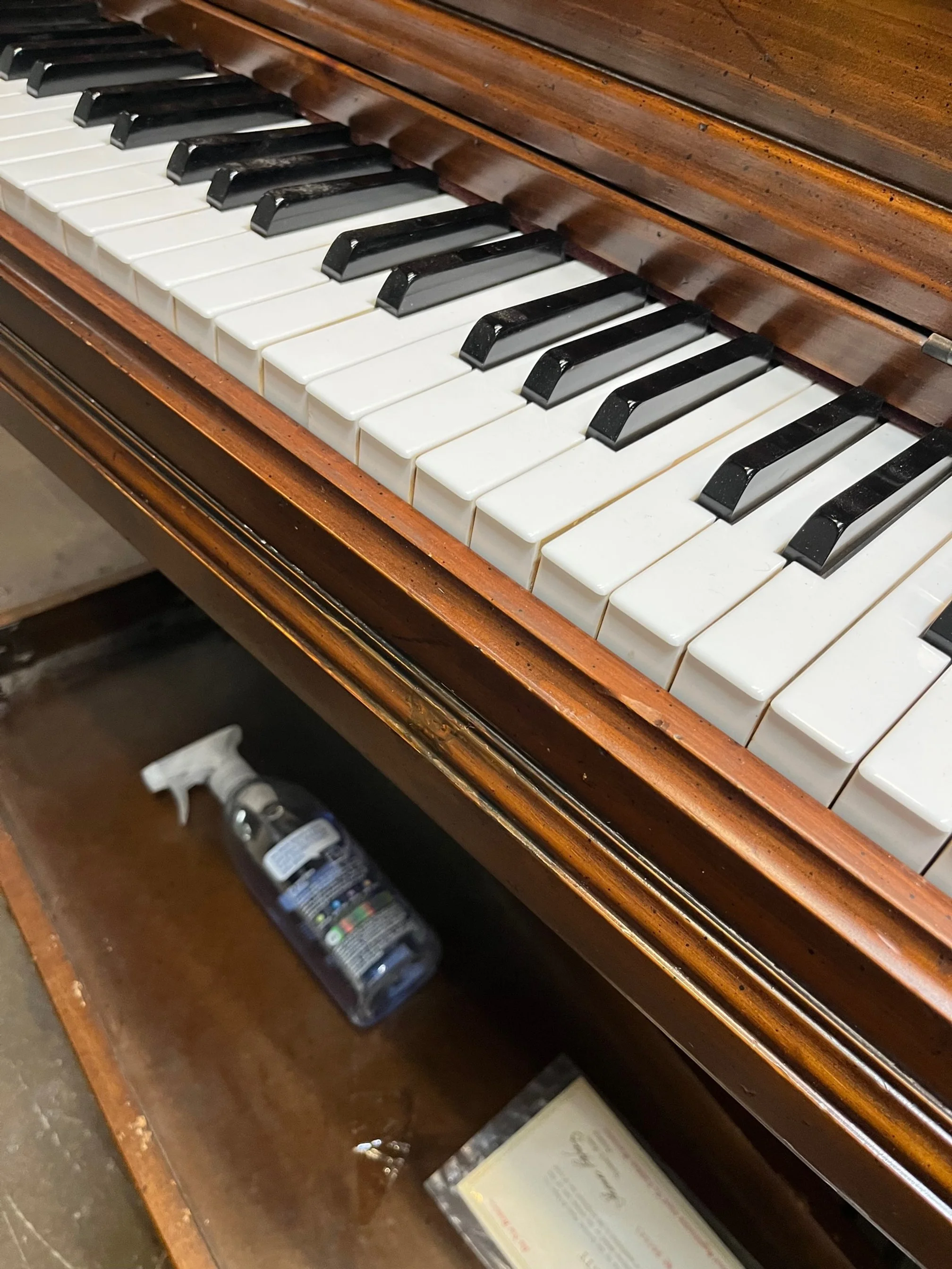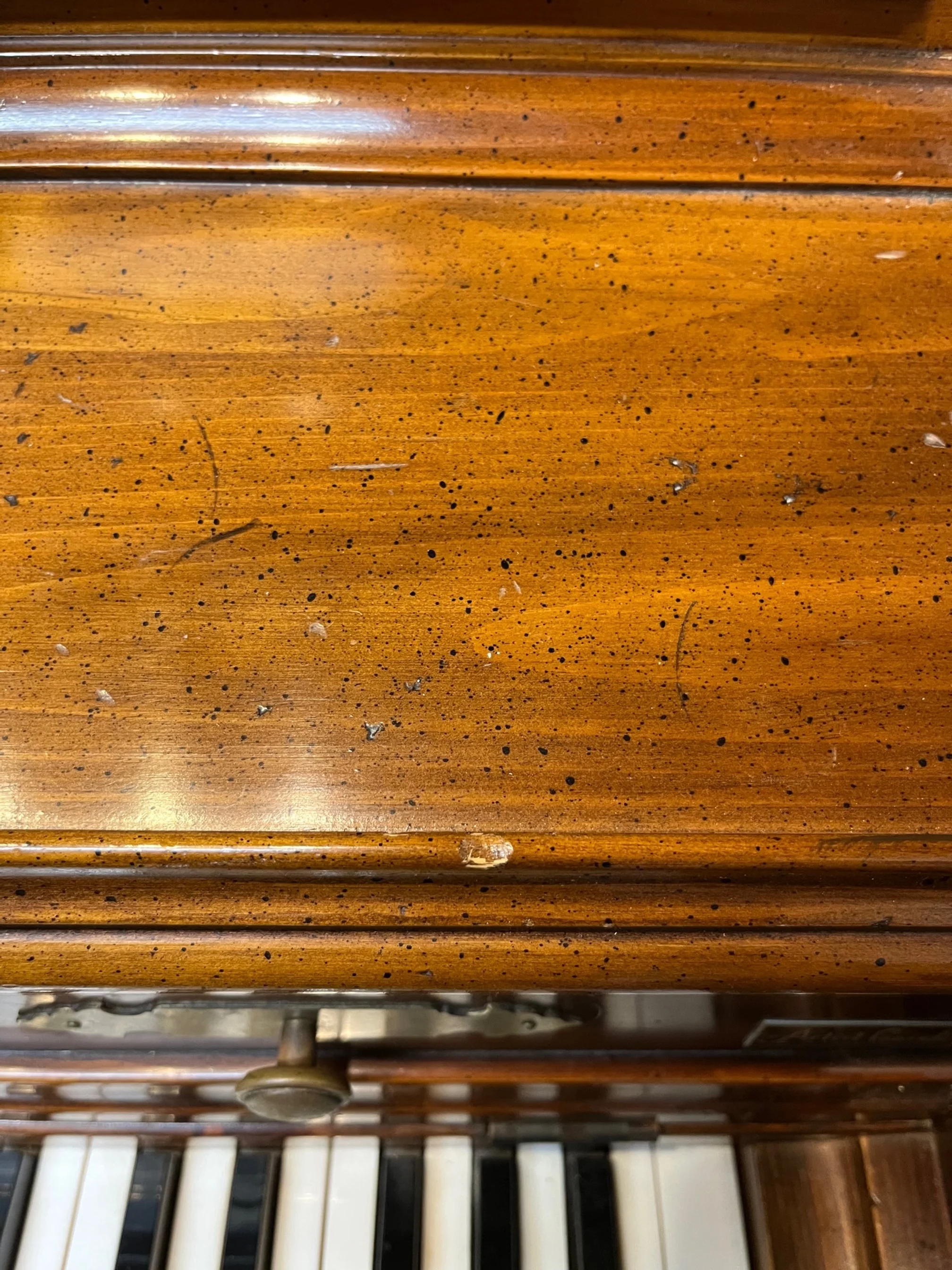 Here is a satin wood finish with deep gouges all the way down to the raw wood. I was able to fill these in and blend them in to the existing finish.